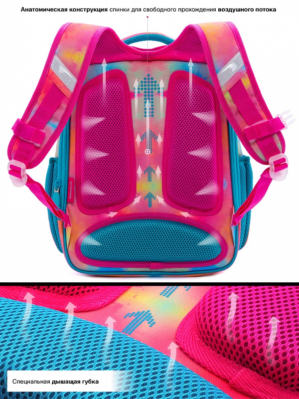 - облегченный каркас ранца изготовлен по жестко-каркасной технологии, что обеспечивает правильную эргономичную форму
