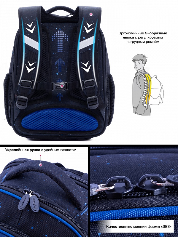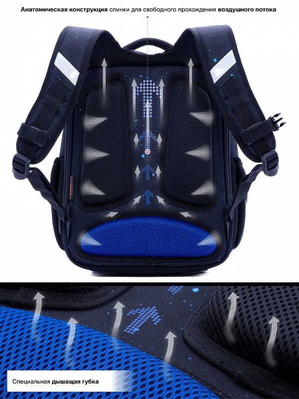 - облегченный каркас ранца изготовлен по жестко-каркасной технологии, что обеспечивает правильную эргономичную форму