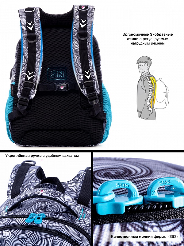 - плечевые вентилируемые лямки с укрепляющими ремнями.