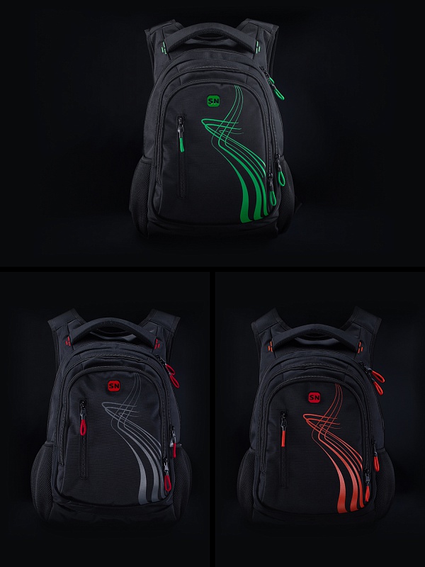 - по бокам два кармана на молнии и два сетчатых кармана на резинке.