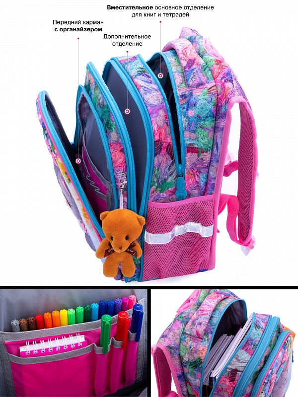 - третье отделение с органайзером для письменных принадлежностей, украшенное объёмной 3D картинкой.