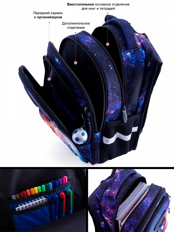 - светоотражающие элементы расположены на передней, задней и боковой частях рюкзака, для обеспечения безопасности в темное время суток.