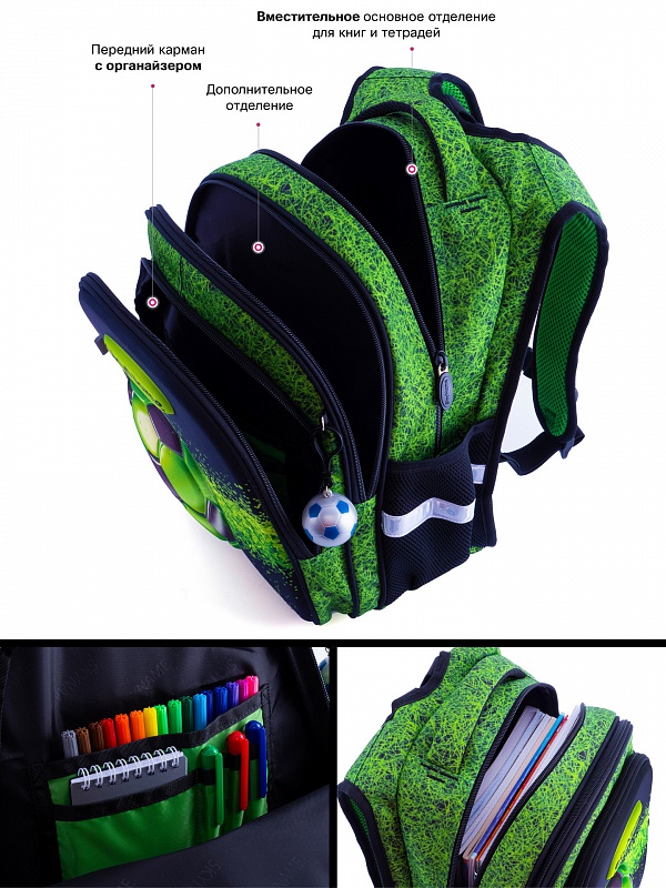 - светоотражающие элементы расположены на передней, задней и боковой частях рюкзака, для обеспечения безопасности в темное время суток.