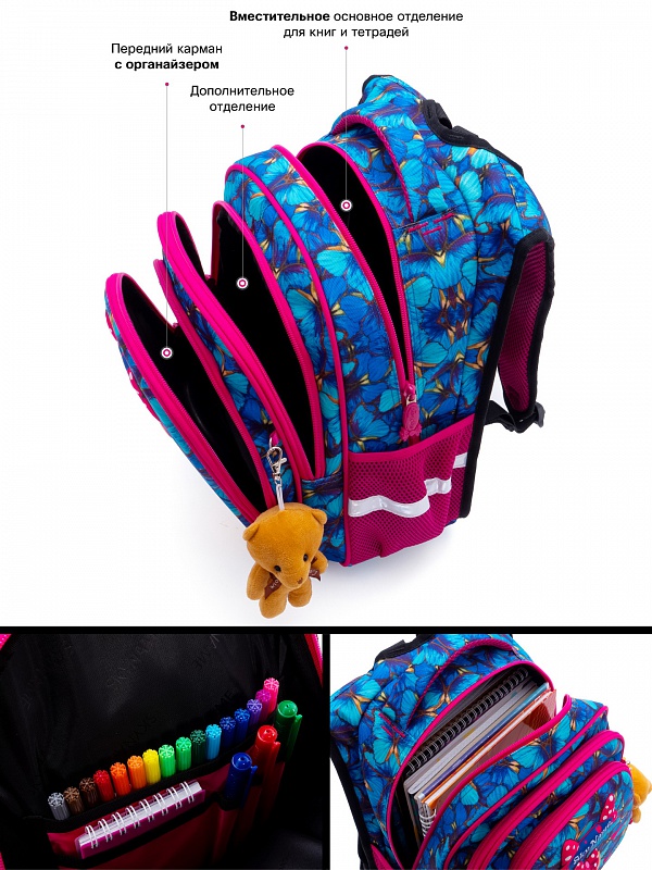 - светоотражающие элементы расположены на передней, задней и боковой частях рюкзака, для обеспечения безопасности в темное время суток.