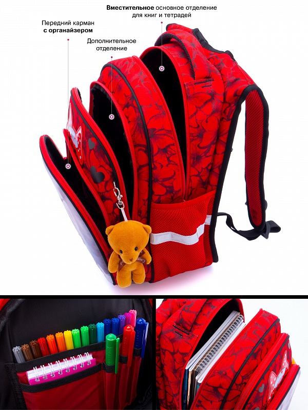 - третье отделение с органайзером для письменных принадлежностей, украшенное объёмной 3D картинкой.