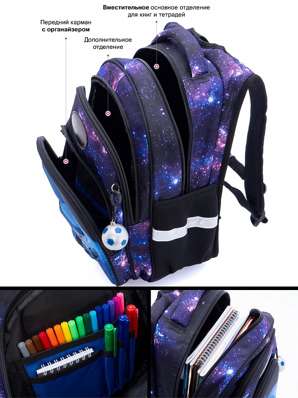 - светоотражающие элементы расположены на передней, задней и боковой частях рюкзака, для обеспечения безопасности в темное время суток.